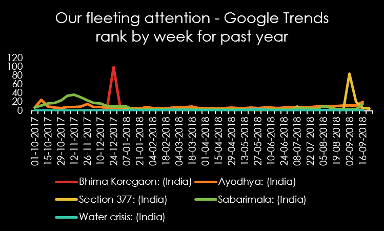 The second factor has to do with the narrative, and the importance given to a given topic by our general population. Press coverage – both quantity and narrative – is an important determinant of that. But looking at Figure 1, we see that consistently, the share of voice given water crisis can afford to move up.