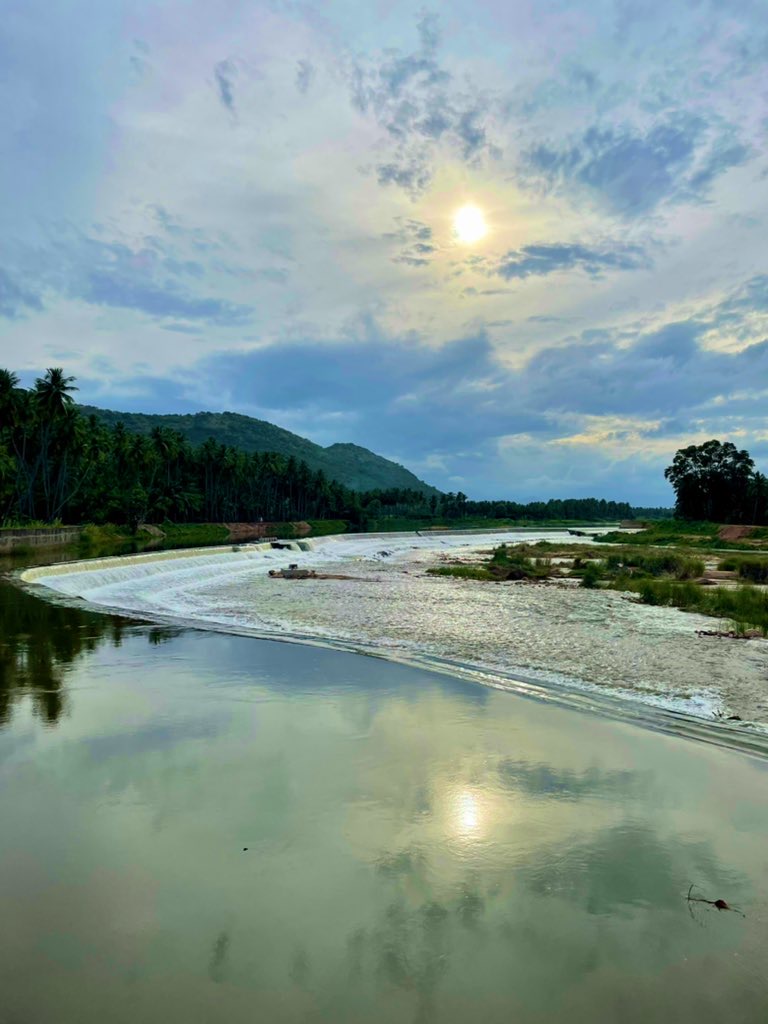 Simply put, ancient Tamil engineers exploited the natural water dynamics of the site to keep the canal system free of silt, manage seasonality and reduce wear and tear of the dam. In other words, they worked with water’s nature – very different from later British constructions, which were based on a far shallower (pun unintended) understanding of local hydrology and sediment mechanisms. The angle also means the force of the incoming water is lower as it strikes at angle rather than full on – meaning the dam is long lasting. The granite dame has stood the test of time – it was built in the 8th century or even earlier, as a 12th century inscription in a nearby temple says.