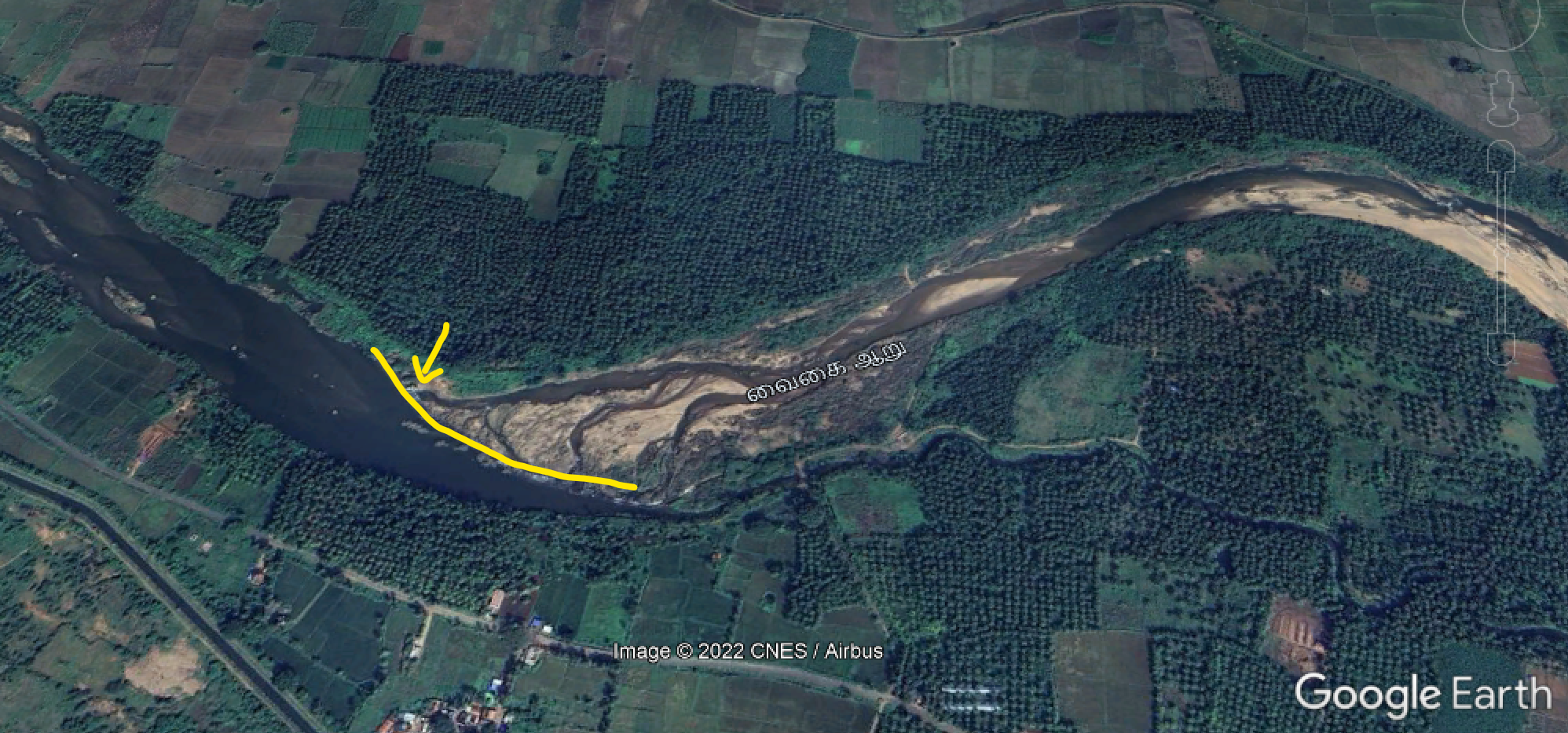 To repeat, the dam understands and works with the seasonality of the Vaigai’s water: during low flow times, water is channelled by the dam into the tank system that supports irrigation around Madurai. During high flow, or floods, water passes over the dam into the main trunk of the river. That understanding of India’s water and a philosophy of trying to work with water (as opposed to trying to reshape it) led to the wealth of ancient Tamil kingdoms as showcased in Ponniyin Selvan. That understanding, and importantly that philosophy of working with nature is missing today, leading us to crisis.